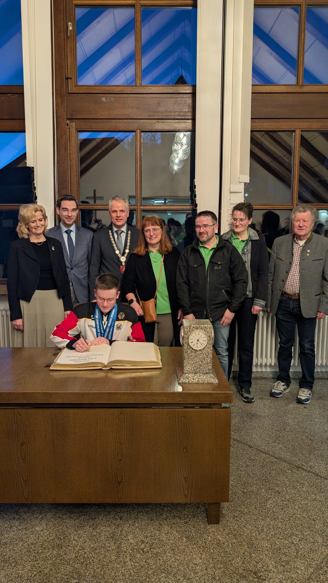 Als sichtbares Zeichen der Wertschätzung trug sich Luca im Anschluss in das Goldene Buch der Gemeinde ein. ✍️📖