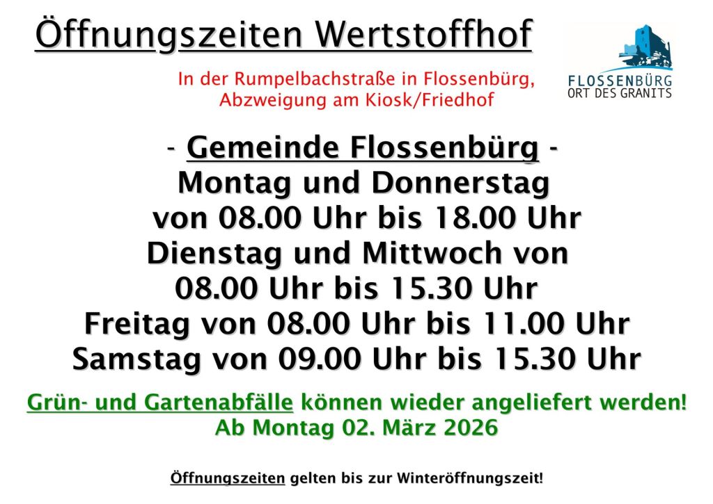 Öffnungs­zeiten Grüngut­an­lie­ferung 2026